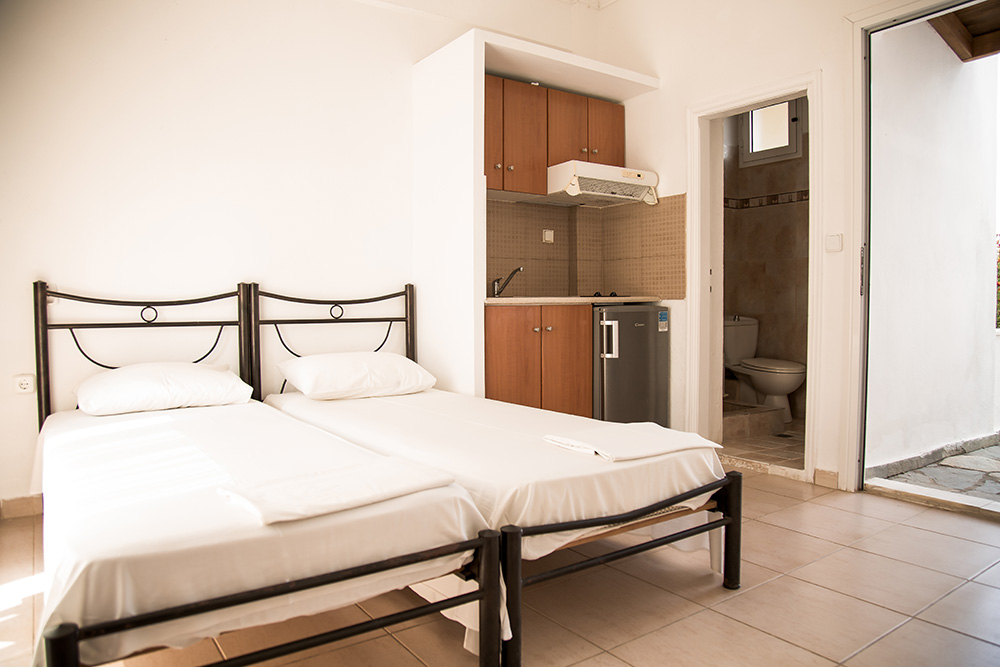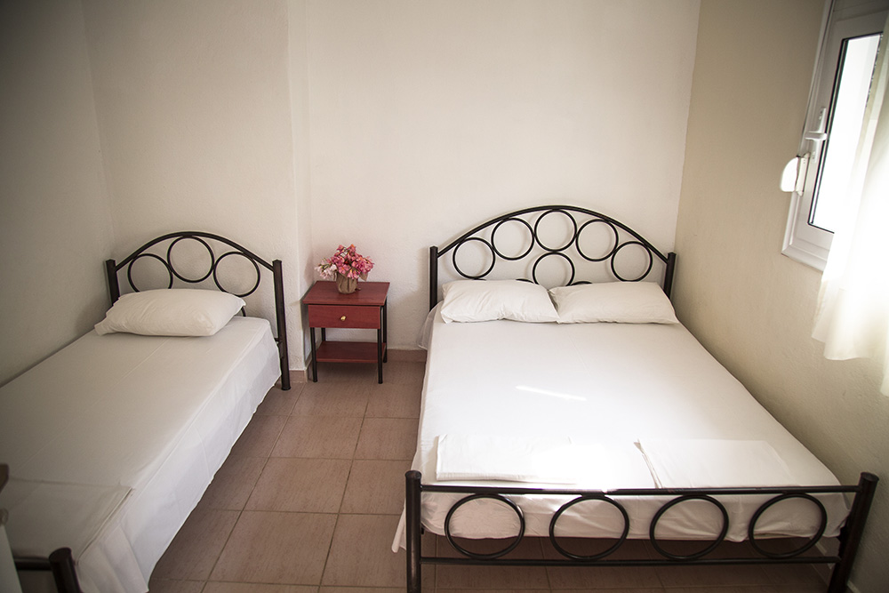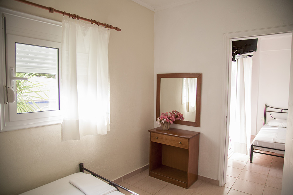 The suite consists of two bedrooms – a double room with an extra bed and a twin room, a kitchenette (small cooker and fridge), a bathroom and a balcony. It is equipped with satellite TV, WI-FI and air-conditioning.